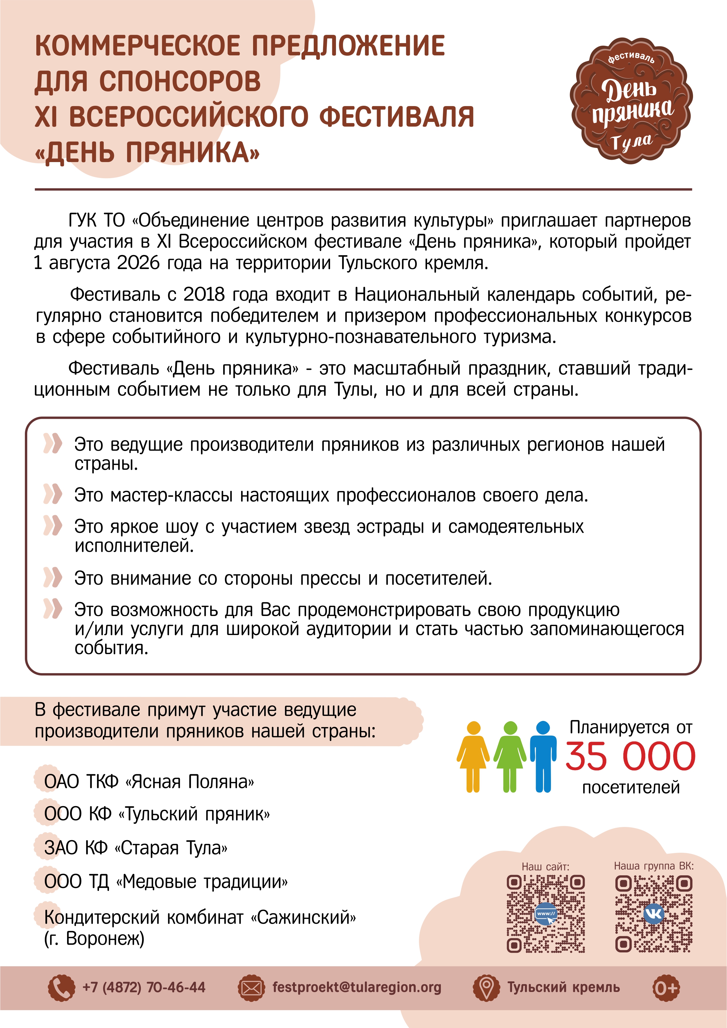 Приглашаем вашу компанию стать спонсором уникального события — Всероссийского фестиваля «День пряника», который объединит пряничные традиции, современное искусство и семейный отдых.